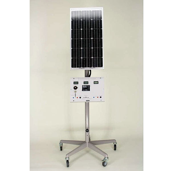 Die physikalischen Grundsätzlichkeiten, die zur fachlich korrekten Planung eines Solar-Stromversorgungssystemes bekannt sein sollten, können in praktischen Versuchen (Wirkungsgrad, zu erwartende elektrische Leistung, Stromspeichersystem aus PV-Modul Laderegler/Batterie; abschätzen der betreibbaren Verbraucher usw.) gezeigt werden. Das fahrbare Modell besteht aus einem PV-Modul, dessen Ausgangsstrom wahlweise einem Direktverbraucher (Glühbirne oder Abnahmebuchsen für externe Spannungsversorgung) oder über einen Laderegler einer Speicherbatterie zugeführt werden kann. Auf einer Kunststoffschichtplatte sind - außer der Batterie - alle zum System gehörigen Komponenten aufgebaut. Bauteilbezeichnungen und Funktionshinweise sind in die Trägerplatte eingraviert.