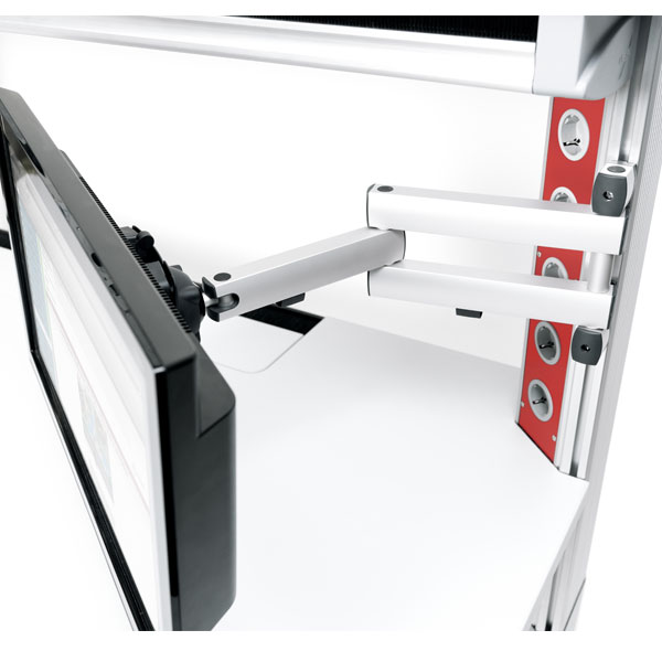 TFT-Schwenkarm zur höhenvariablen Montage an der Stirn- oder Breitseite des Profils, für Monitore bis 15 kg