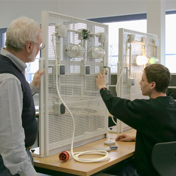 LochblechwändeSie werden in den Experimentierrahmen eingehängt. Eine Version mit Auflagefüßen erlaubt die direkte Montage auf Tischen, Aufbauten und Mobilen. Mit der Rechtecklochung und mit zusätzlichem Befestigungsmaterial lassen sich die Lochblechwände auch zum Aufbau von fachpraktischen Übungen mit handelsüblichem Aufputz- und Installationsmaterial nutzen.HolzwändeSie nehmen komplette Installationen auf und können in Experimentierrahmen eingehängt werden.