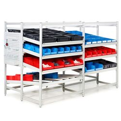 Stellt sicher, dass benötigte Teile schnell zur Hand sind und keine Zeit für das Auffinden oder Kommissionieren von Komponenten vergeudet wird, was zur Unterstützung des LEAN-Prozesses beiträgt.