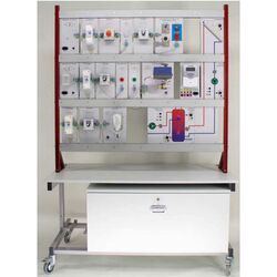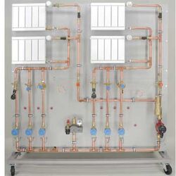 Das Schulungsmodell erlaubt die Inbetriebnahme von Heizungsreglern an unterschiedlichen Anlagenschemata: