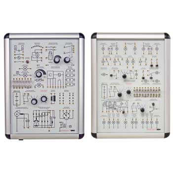 Gerätebeschreibung:Das Verständnis und die Interpretation moderner Kfz-Stromlauf- bzw. Schaltpläne wird immer schwieriger. Die logische Zuordnung und die Funktion des jeweiligen Bauelementes im Rahmen der Gesamtelektrik ist nur durch fachkundiges Lesen des Schaltplanes erkennbar.Der Schüler muss in die Lage versetzt werden, Schaltpläne, bestehend aus einer Vielzahl von Einzelsymbolen, zu verstehen und auf das Fahrzeug übertragen zu können. Die Hauptaufgabe der Schülertrainer besteht somit darin, einen vorgegebenen Schaltplan (oder einen Plan, den der Schüler vorher gezeichnet hat) auf der Steckplatte des Schülertrainers zu einer arbeitsfähigen Schaltung zu verkabeln. Es wird die Abstraktionsfähigkeit des Schülers - vom Schaltsymbol zum Verhalten des realen Bauteiles - trainiert.´Auf den Steckplatten der Schülertrainer finden Sie die Schaltsymbole der gebräuchlichsten Kfz-Elektrikbauteile. Die einzelnen Verbraucher werden durch sich analog verhaltende Elektronikbaugruppen simuliert. Alle Komponenten entsprechen in ihrer Funktion und in der notwendigen Beschaltung der Originalteilen. Die Verbindungen erfolgen durch Steckkabel und sind gegen Kurzschluss gesichert. Zum Training der Fehlersuche an den schon bestehenden Schaltungen können bei beiden Schülertrainern 10 verschiedene Fehler gezielt eingegeben werden.Der besseren Übersichtlichkeit wegen ist der Gesamtschaltplan auf 2 Schülertrainer, EL 1 und EL 2, aufgeteilt.Schülertrainer EL1:Der Trainer beinhaltet die Systeme Zündung, Anlasser, Lichtmaschine, Wischer, Horn, Vorglühanlage, Motorkontrolle, Ladung, Öldruck sowie abgestimmter Kabelsatz und Fehlereingabemöglichkeit.Schülertrainer EL2:Dieser Trainer beinhaltet die Beleuchtungs- und Signalanlage einschließlich der Relaisschaltung für z. B. Zusatzscheinwerfer sowie abgestimmter Kabelsatz und Fehlereingabemöglichkeit.