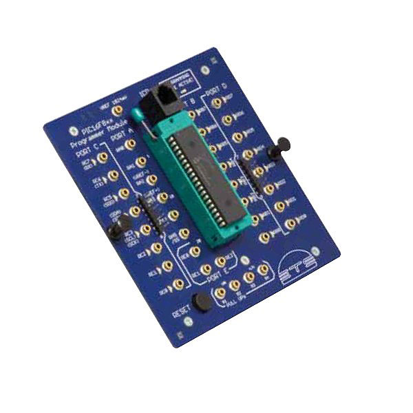 Das PIC16F8xx Programmer Modul ist ein in sich geschlossenes Test- und Programmiermodul für das Mikrocomputer-Trainingssystem „μ-Trainer“ und dient der Programmierung von Mikrocontrollern der Serie PIC16F8xx mit 40-poligem DIP-Gehäuse sowie deren Betrieb im Ausbildungssystem.