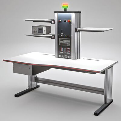 Die Standalone-Mess- und Prüfgeräte sollen komfortabel weiter genutzt werden können - deshalb gehören höhenverstellbare Flex Board Ablagen zur Ausstattung. Direkt an der Bedienkonsole montiert, lassen sie sich individuell auf eine angenehme Höhe einstellen. Mit Hilfe einer OPC-UA Verbindung werden die Geräte einfach über den Touchscreen der Bedienkonsole bedient.