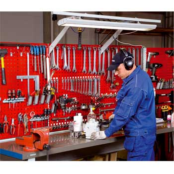 Lochplatten sind praktisch für die Aufbewahrung von Werkzeugen und Geräten in der Werkstatt