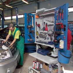 Ablageboards, Greifschalen und spezielle Aufhängevorrichtungen ergänzen die Möglichkeiten zur Unterbringung der Werkzeuge